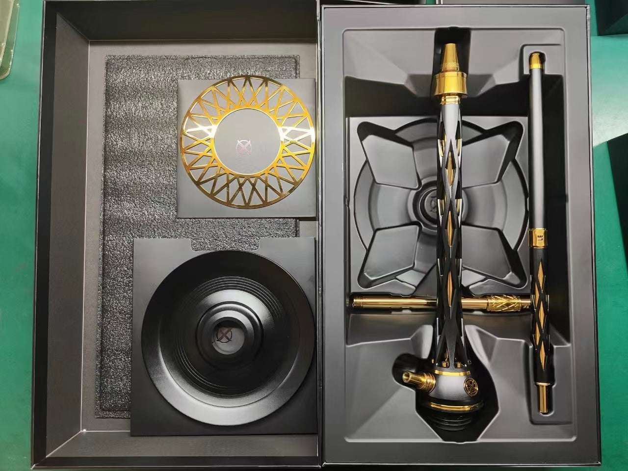 Complete Hookah Set: Includes all essential accessories—bowl, stem, hose, tray, and base—delivered in an elegant luxury gift box.